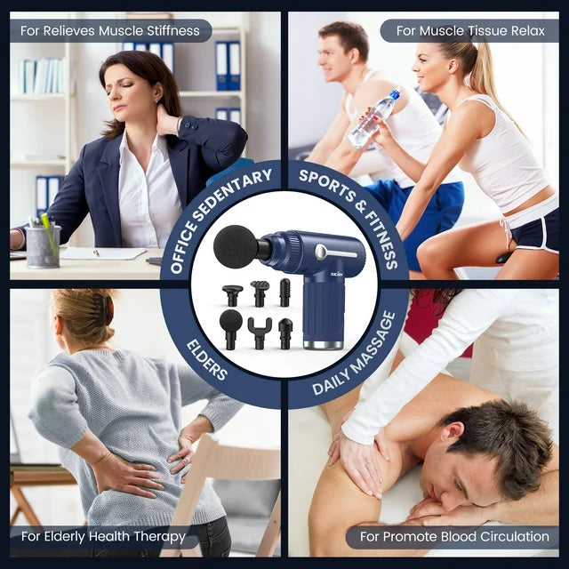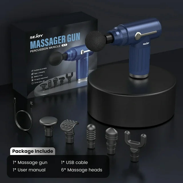 - Sejoy deep tissue muscle massager includes 6 replacement massage heads to meet all muscle relaxation needs. The handheld design allows you to touch every muscle and provide a relaxing massage experience. Promote blood circulation and decompose lactic acid, greatly shorten muscle recovery time.