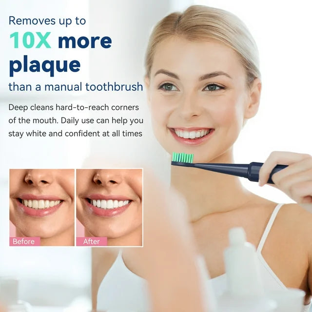 - 【Remove Up to 15X Plaque than A Manual Toothbrush】The Sejoy Sonic Electric Toothbrush produces 33,000 ultrasonic motions per minute to deliver fluid deep between your teeth and gum line for superior cleaning that effectively removes up to 99.99% of plaque. The cleaning effect is 15 times that of manual toothbrushes and 3 times that of ordinary electric toothbrushes. Whiten teeth and improve oral health in 2 weeks for a more attractive and confident smile.