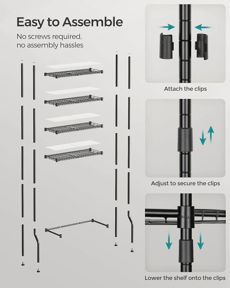 [Effortless Assembly] Assembling this over-the-toilet storage rack is a breeze. No need for screws or wrenches. Simply join the clearly labeled parts together as per the instructions, and your storage solution is ready to use