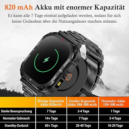 This connected man watch is tested to military standards and can withstand strong shocks and vibrations. At the same time, the connected man watch is also IP68 waterproof, so you don't have to worry about water. The pocket lamp can illuminate any dark corner and fully ensure its safety at night. It is a reliable partner when working outdoors or doing sports.