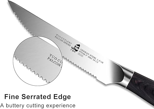 - Best Gift to Others: TUO provides high-quality customer service, including lifetime warranty. Each steak knife set will be equipped with an exquisite box, which not only can be used for yourself, but also as a unique gift choice for your family or friends. Enjoy a delicious steak set with them.
