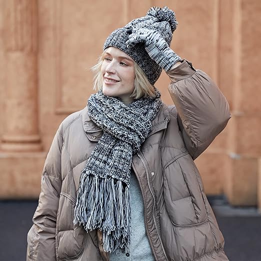 - Use of Mobile Devices: MissShorthair winter warm three piece suit, including a knitted pompom cap, which can keep your head warm in cold weather, a warm knitted scarf to protect your neck, a pair of touch screen gloves to allow your hands to operate your mobile phone freely outdoors, 3 in 1 winter set to make you fully armed and warm in winter