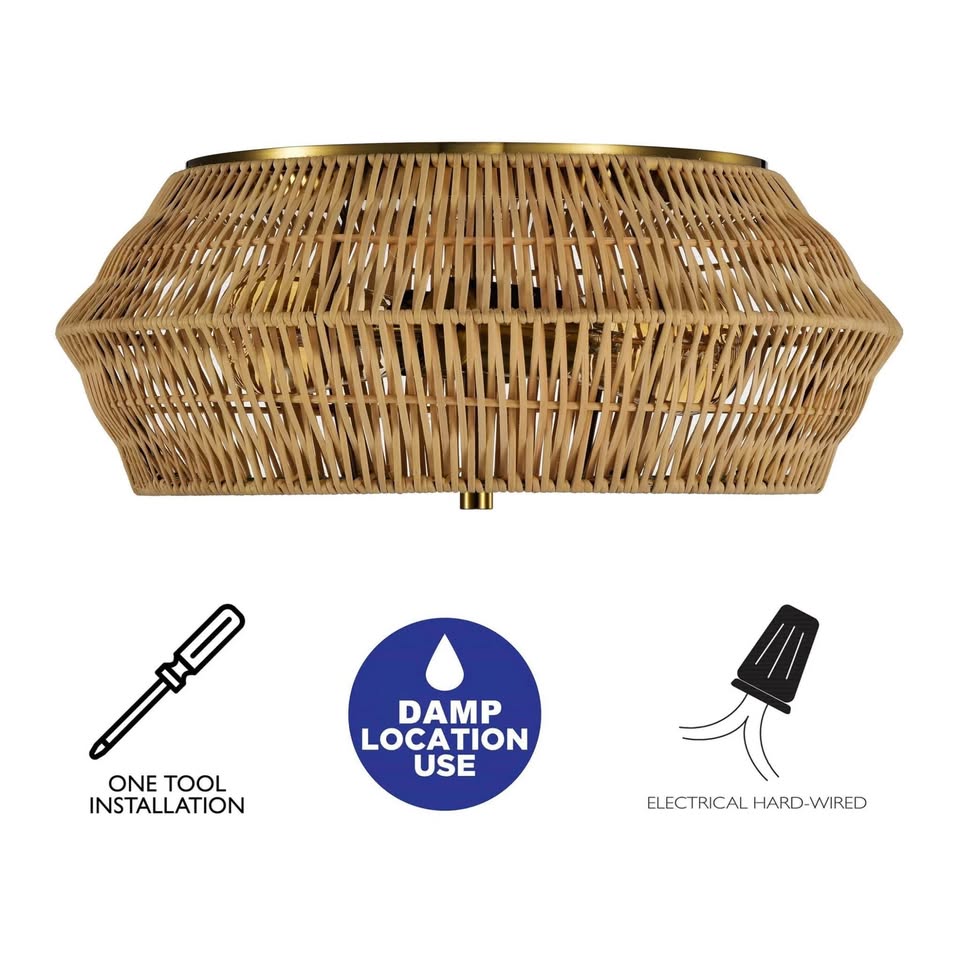 双向照明:这款灯具配备两个最大功率为 60 瓦的 E26 灯座(不含灯泡)和透明玻璃底座扩散器,可为生活空间提供环境照明。产品尺寸:藤编吸顶灯尺寸为 16 英寸宽 x 16 英寸长 x 6 英寸高,玻璃底座深度为 12.5 英寸,吸顶盘深度为 11 英寸。点亮您的空间:这款吸顶灯设计轻盈,本身也是一件引人注目的装饰品。此外,它与藤制家具和储物风格完美搭配,适用于庭院、走廊或其他户外空间。安装简便:所有安装配件均已包含在内,方便快捷地完成安装。