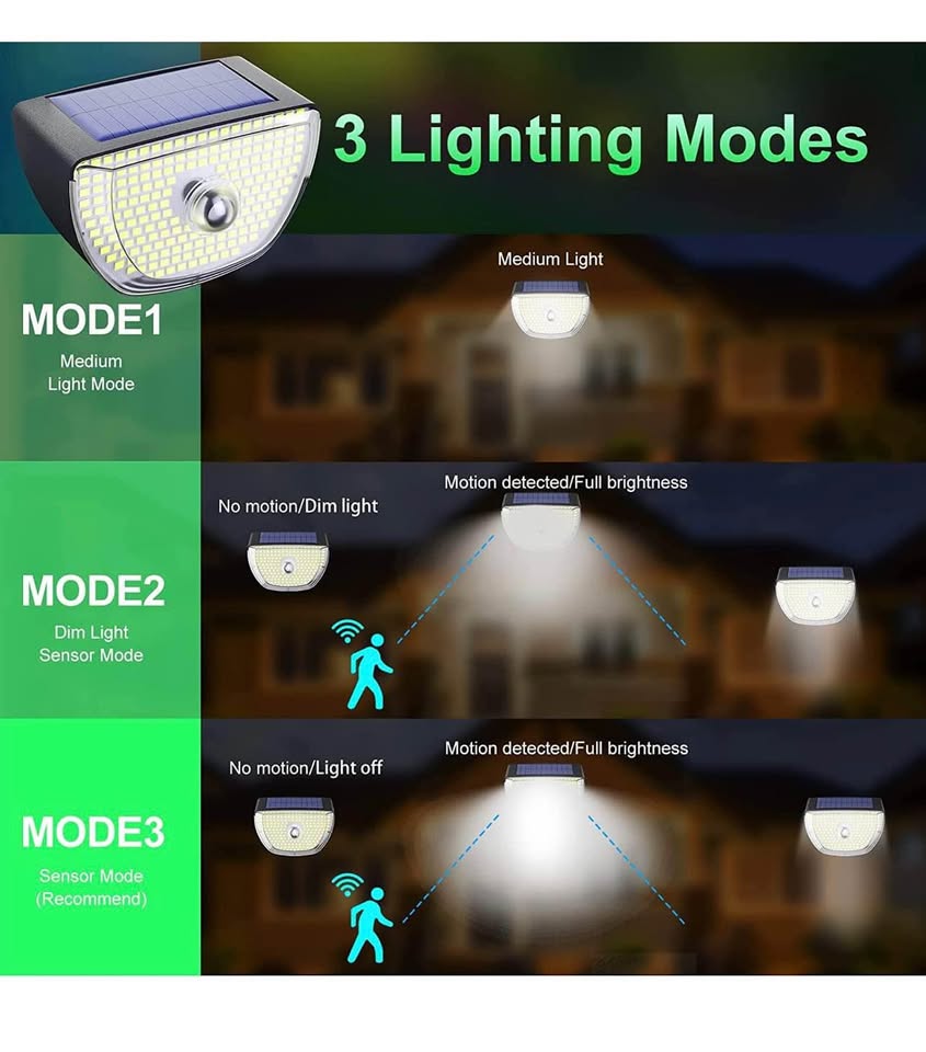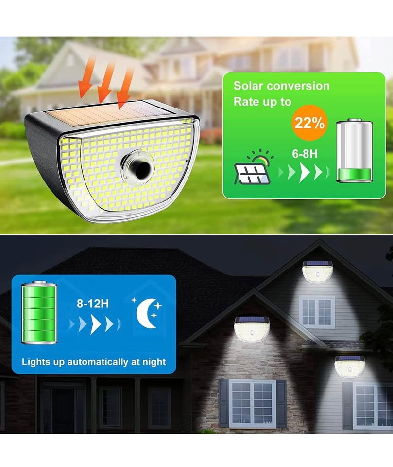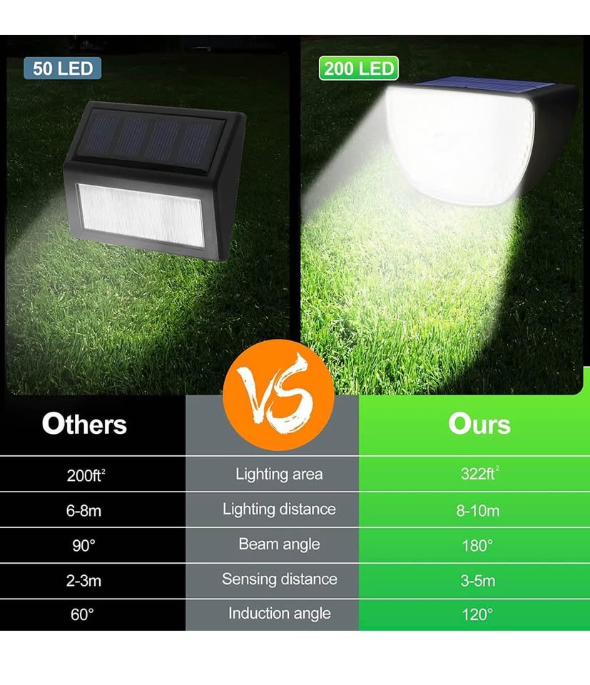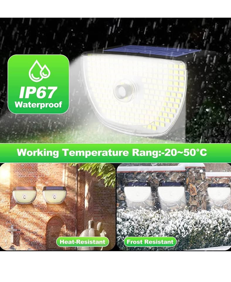 ☀【200颗LED超亮太阳能灯】200颗LED灯珠意味着更高的亮度。我们升级后的太阳能灯亮度极高,灵敏度也很高,能够完美满足您的安全和照明需求。当您经过前门、后院、花园围栏或车库时,您一定会爱上我们RUAOPR太阳能灯的明亮光芒。配备200颗更亮的LED灯珠,您可以将其安装在户外墙壁上,或用于前门、后院,当然也适用于花园围栏、楼梯、小路等。
