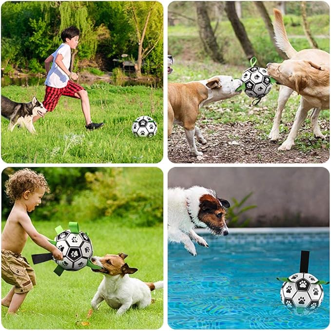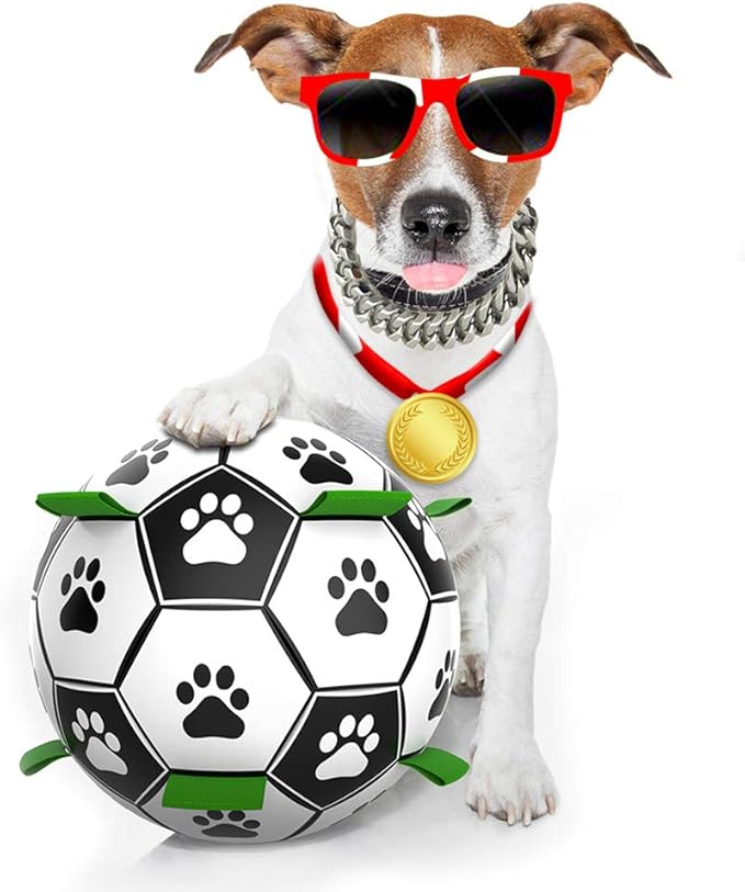 - 【优质安全材质】这款狗狗足球(7.5英寸)采用食品级天然橡胶和高强度TPU材料制成,经久耐用且柔软。它还可以模拟真实的足球运动,让狗狗在草坪上追逐奔跑,释放压力。