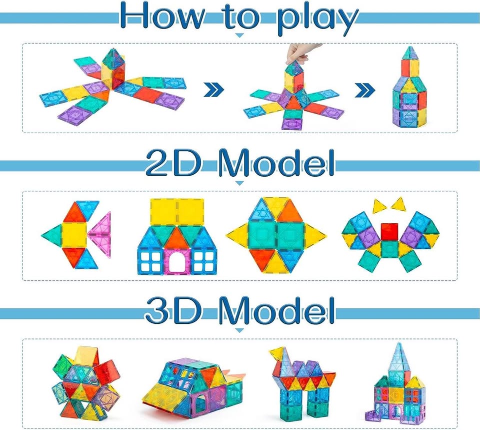 这款幼儿早教磁力玩具非常棒——102块磁力片可以让宝宝搭建2D和3D拼图图案,开放式的磁力积木设计激发孩子的创造力和想象力,让他们探索无限可能。孩子们可以借此提升创造力和想象力。
