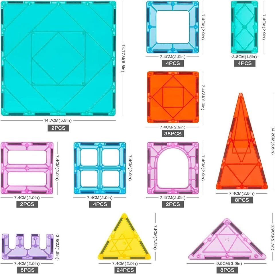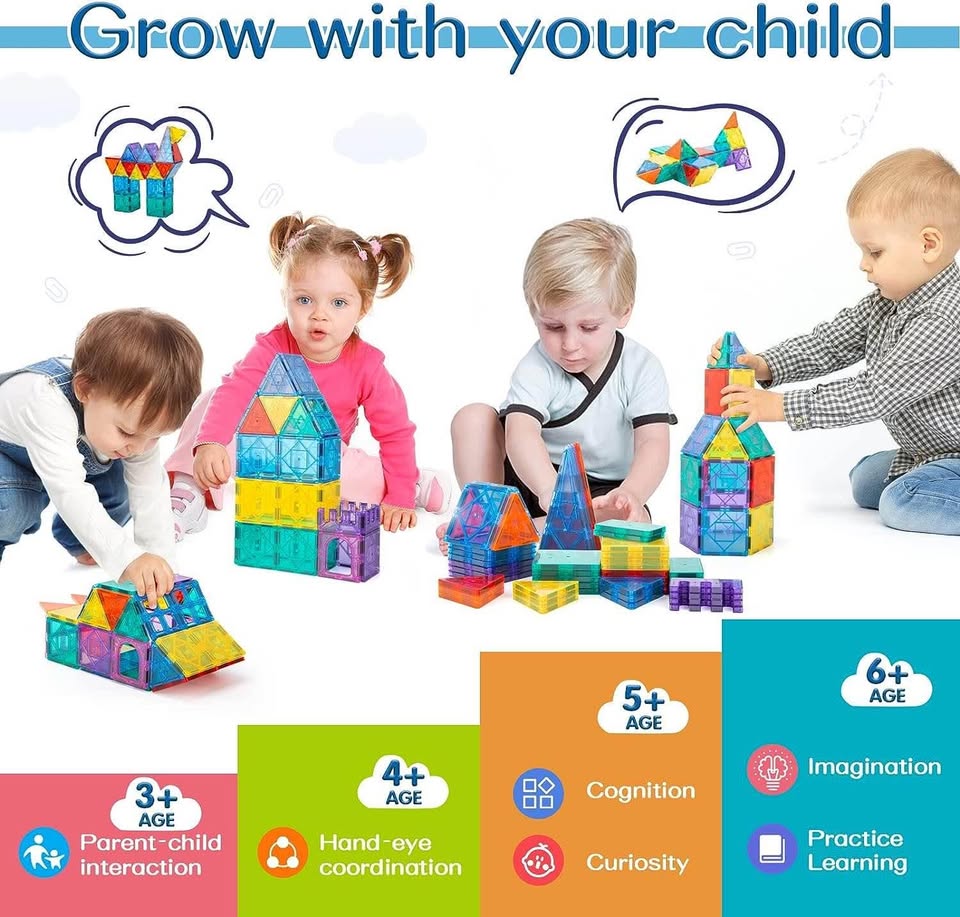 提升孩子的自信心 - 采用先进的组装技术,坚固耐用,防摔耐磨,边缘光滑,适合不同年龄段的孩子轻松上手,通过孩子创造力,将STEM磁性积木组合成各种形状,从而增强孩子的自信心。