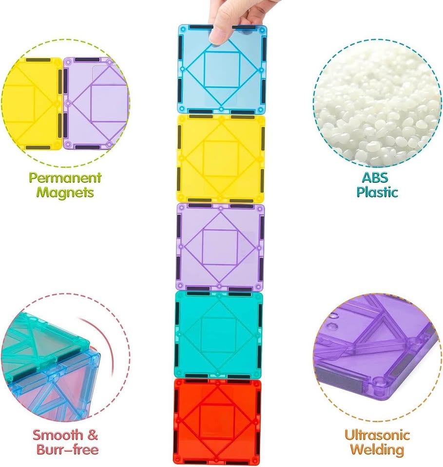 品质卓越,安全可靠——这款磁力片玩具采用无毒环保塑料材质制成。这款学前教育玩具不会造成任何金属框架带来的安全隐患,避免孩子受伤。