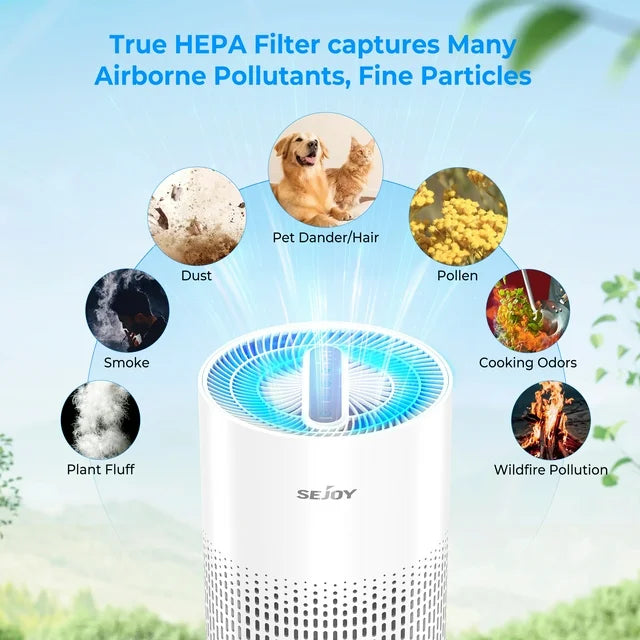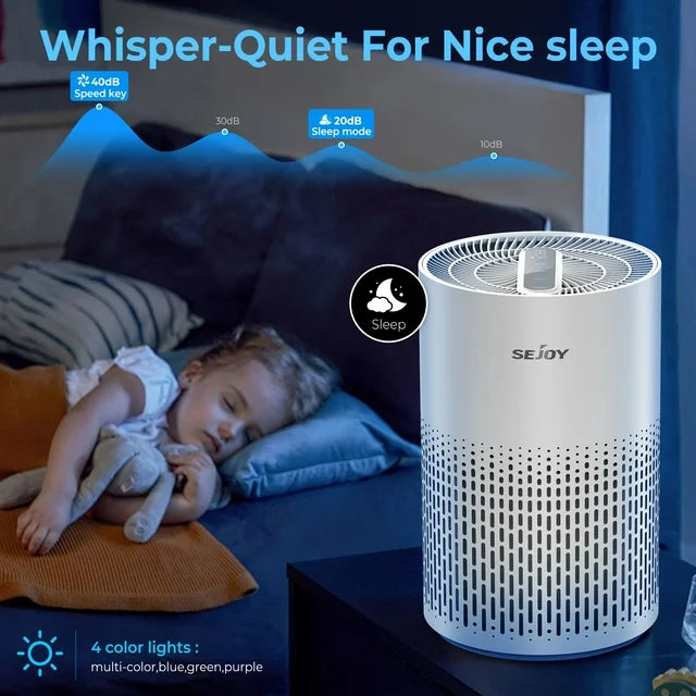 SEJOY家用空气净化器,适用于面积达800平方英尺的大房间,HEPA高效空气净化器,适用于卧室,可去除99.9%的宠物毛发、过敏原、烟雾、异味、灰尘和花粉。