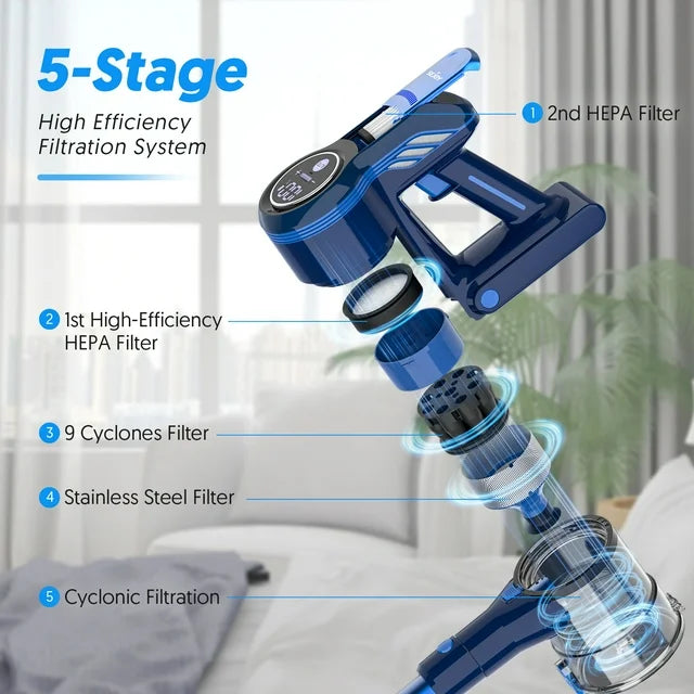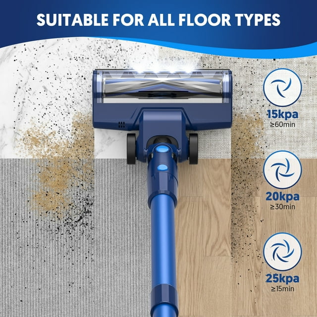 SEJOY 无绳手持吸尘器,25KPa 吸力,带触摸显示屏,续航时间 60 分钟,轻巧便携,适用于地毯、硬木地板和宠物毛发清洁。
