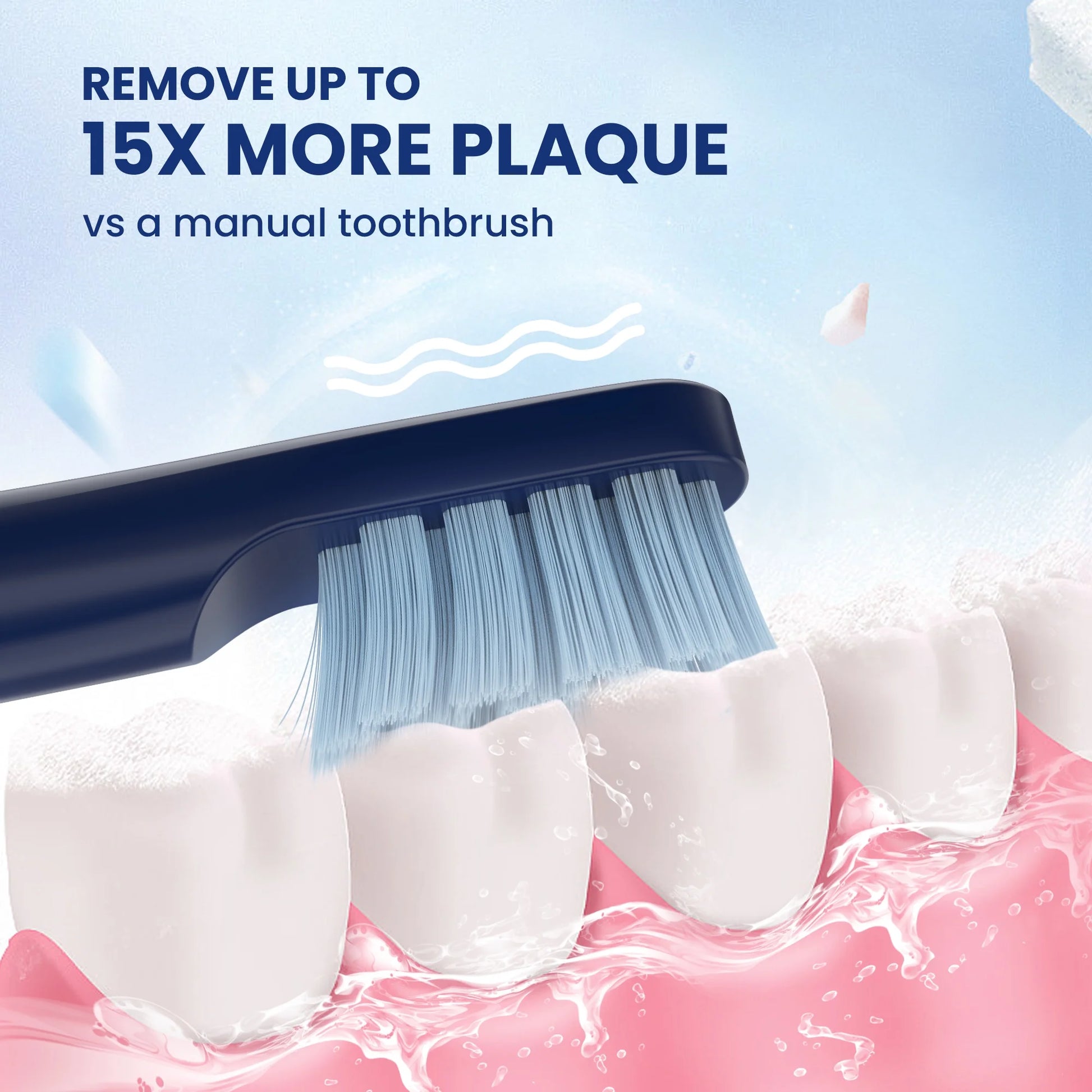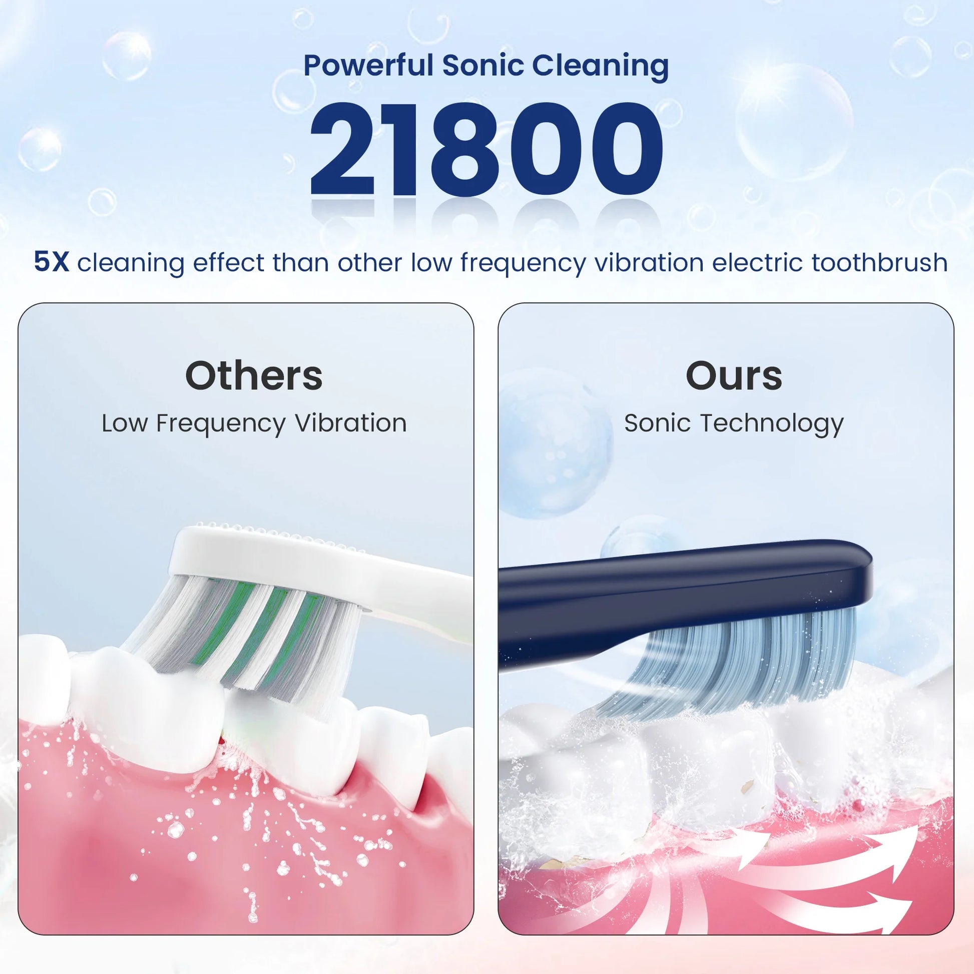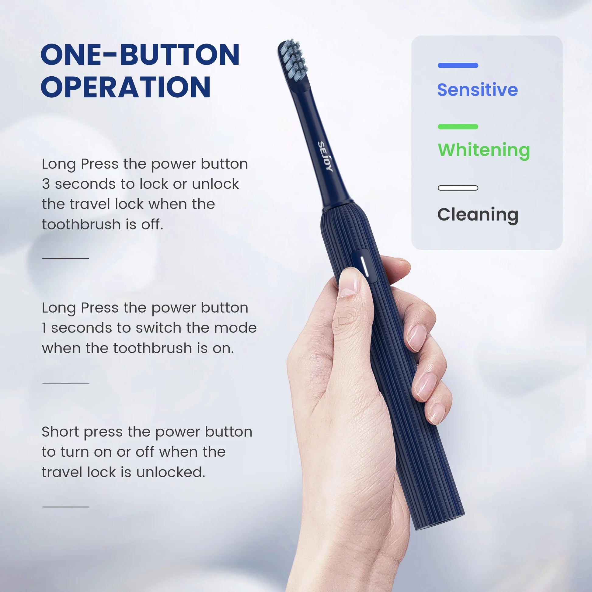 - 【深度清洁牙齿】Sejoy电动牙刷每分钟振动21,800次,去除的牙渍比手动牙刷多15倍。声波技术轻柔地将液体脉冲输送到牙齿之间和牙龈线,每次都能带来温和有效的清洁。