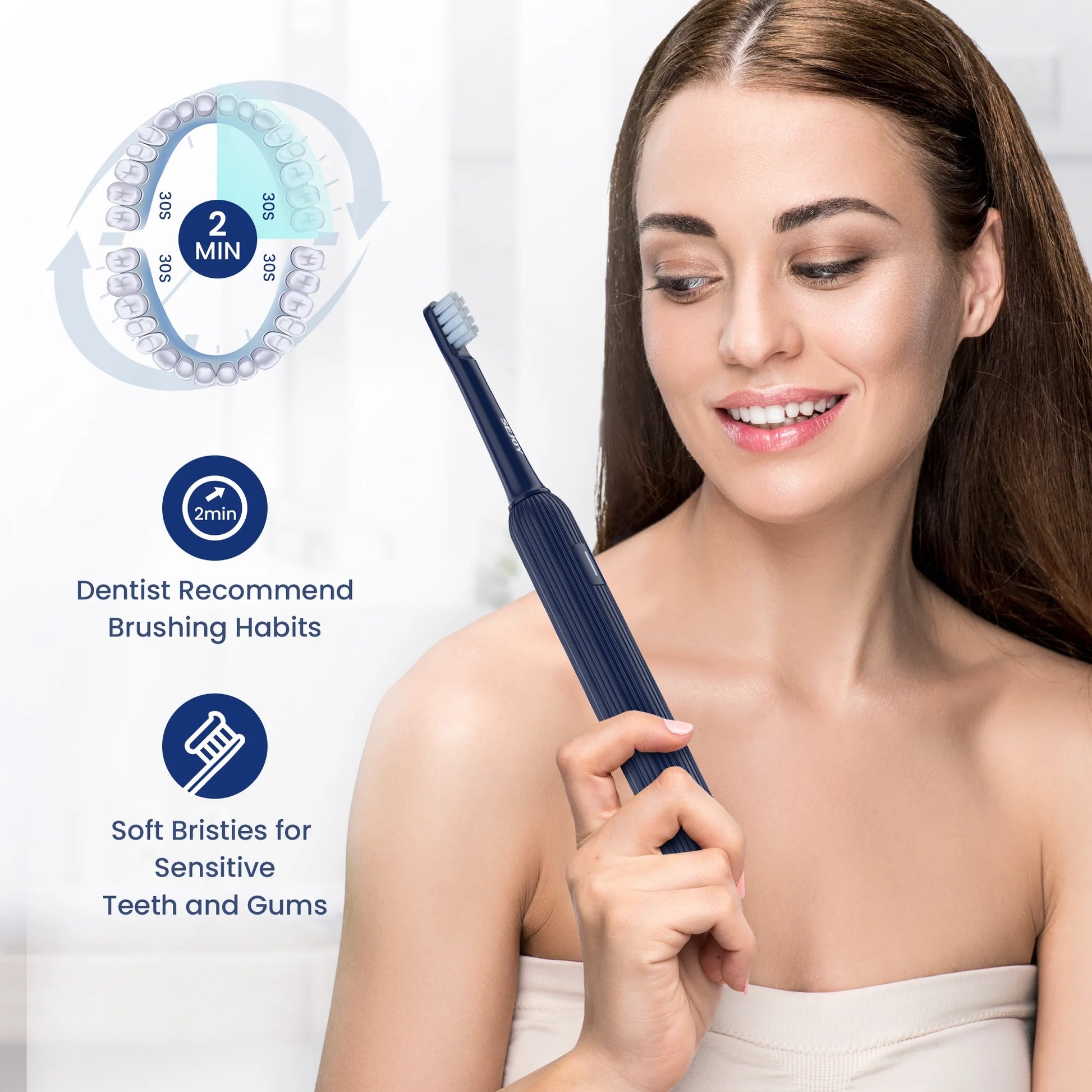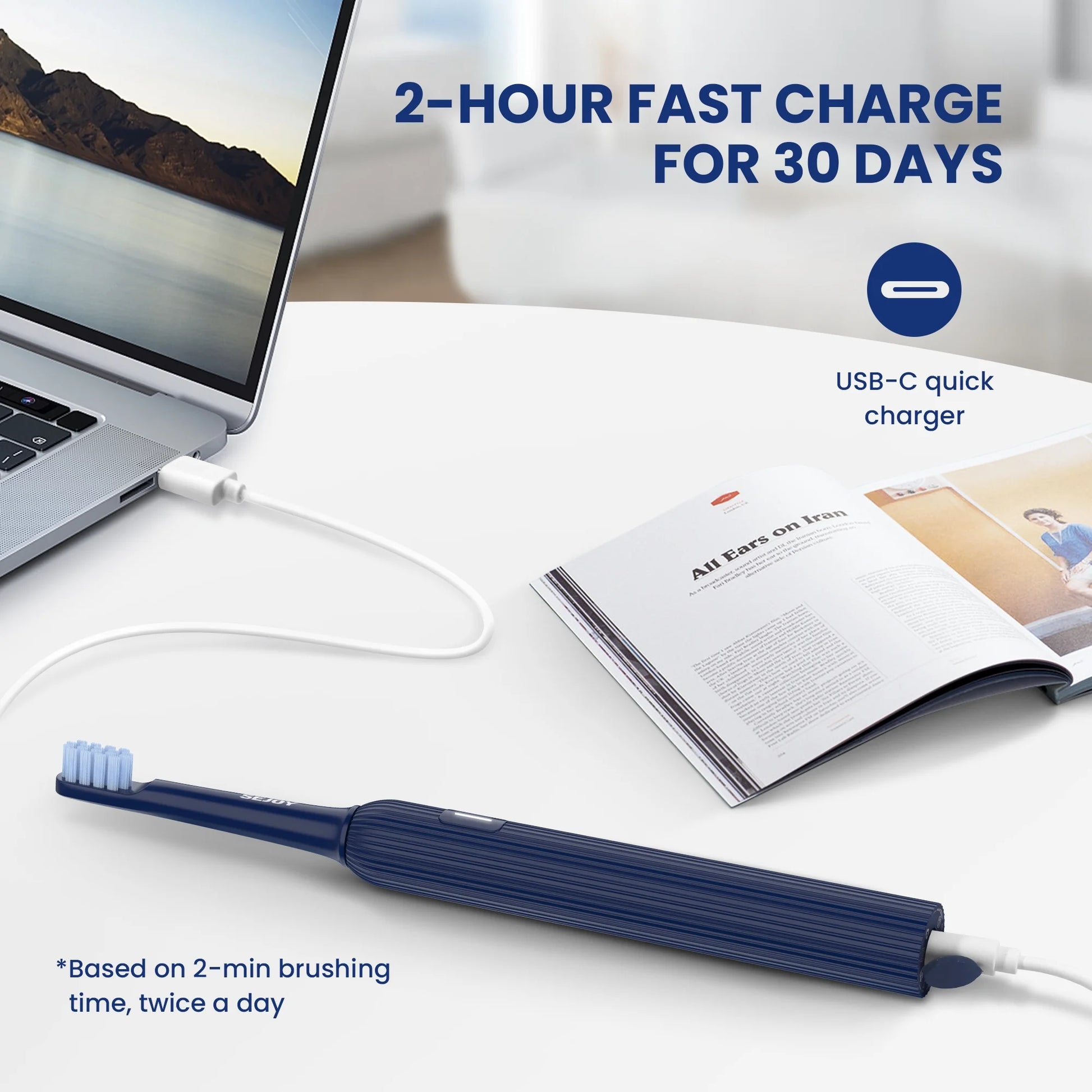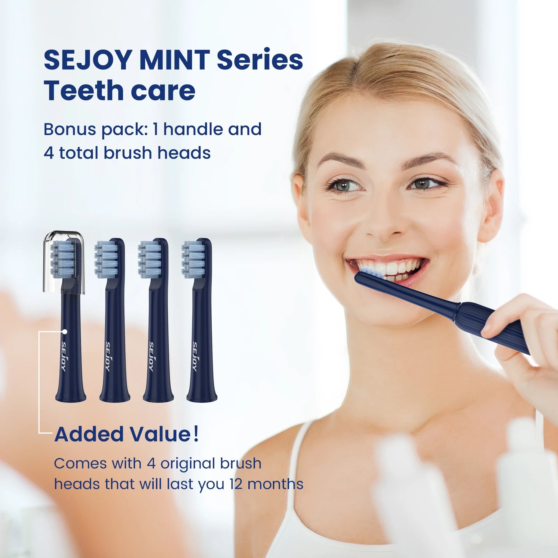 Sejoy 电动牙刷,可充电电动牙刷,快充声波牙刷,带旅行锁,4 个刷头,礼品装,海军蓝