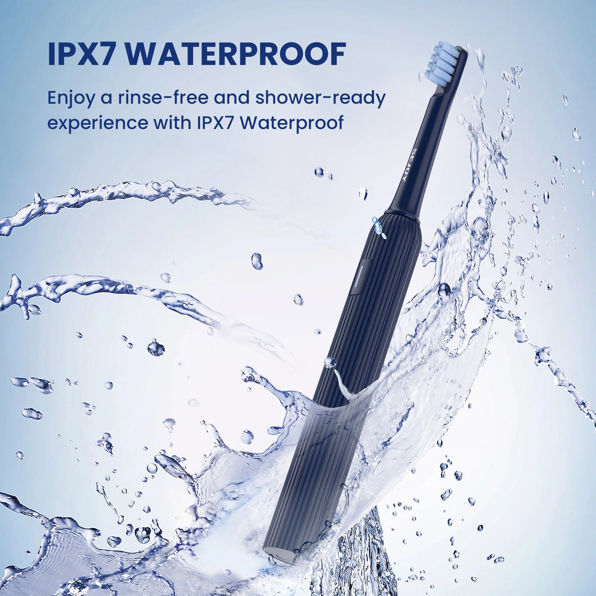 - 【牙医推荐的刷牙习惯】这款声波电动牙刷采用IPX7级防水设计,因此整个牙刷都可以安全地用水冲洗,用户可以在洗澡或淋浴时安全使用。内置计时器每30秒暂停一次,帮助您养成牙医推荐的刷牙习惯。