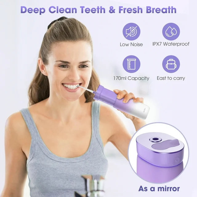 Sejoy 无绳便携式冲牙器,3 种模式 DIY,IPX7 防水,170 毫升伸缩水箱,旅行家用两用冲牙器,紫色