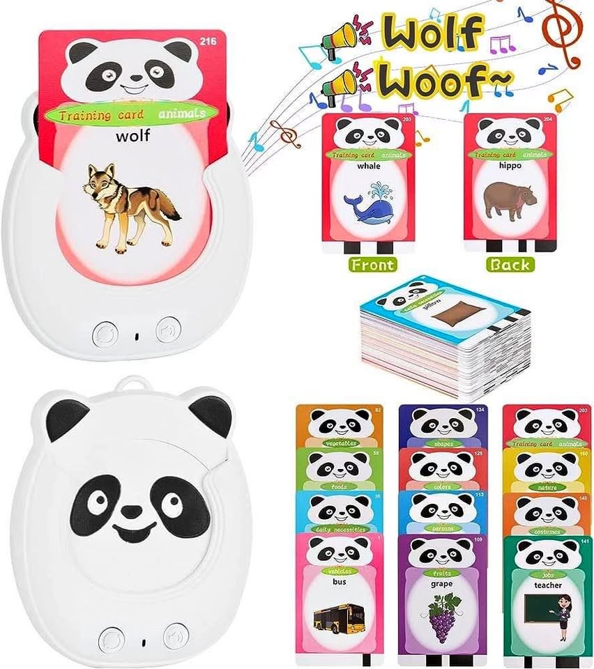 会说话的闪卡,适合1-6岁幼儿的玩具,1-3岁儿童早教学习玩具,自闭症感官玩具,熊猫阅读机,圣诞节生日礼物,男孩女孩白色