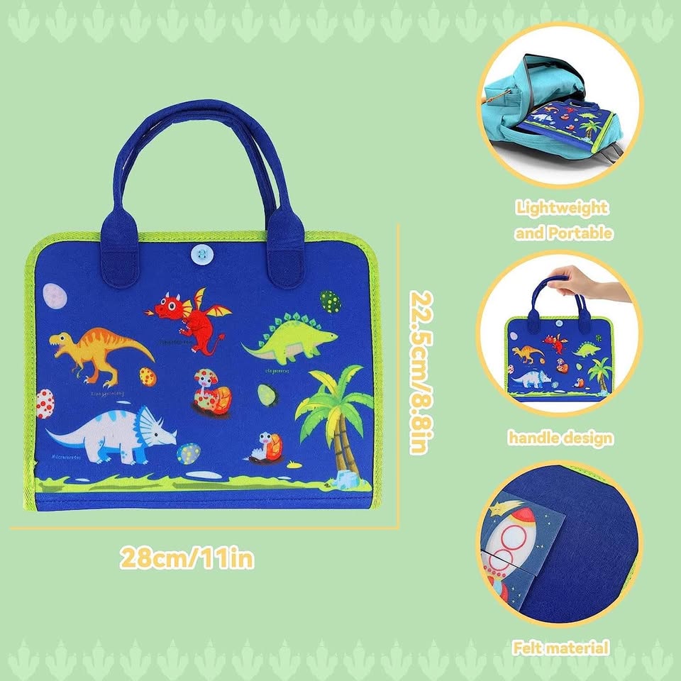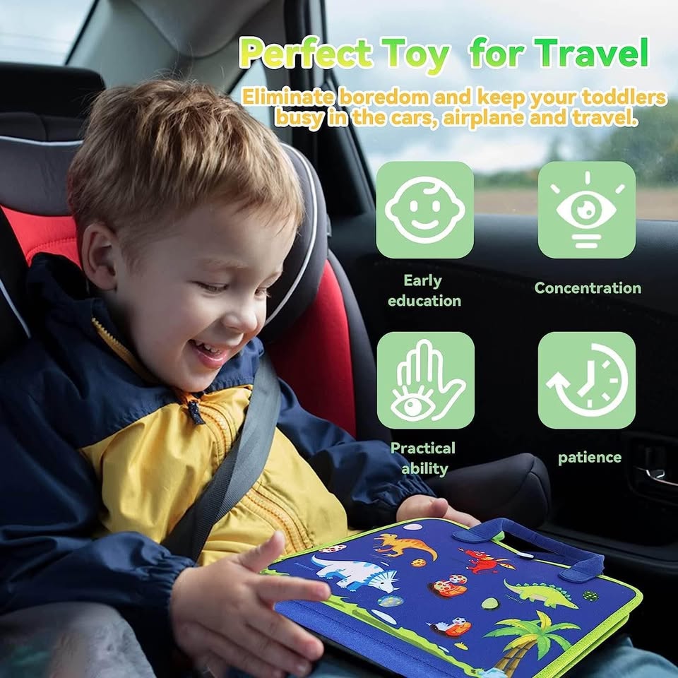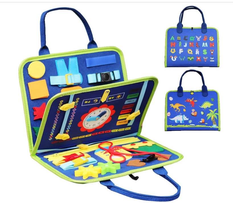 😁【幼儿旅行忙碌书】 - 这款蒙特梭利幼儿忙碌板玩具采用柔软的毛毡布制成,富有弹性,没有硬角。它仅重286克,采用手提包式设计,轻巧便携。适合在多种场合玩耍,例如:飞机上、车里、家里等等。这款色彩鲜艳的旅行忙碌板玩具能够吸引男孩女孩的目光,让幼儿在玩耍中保持安静。带上它,随时随地带给您快乐。